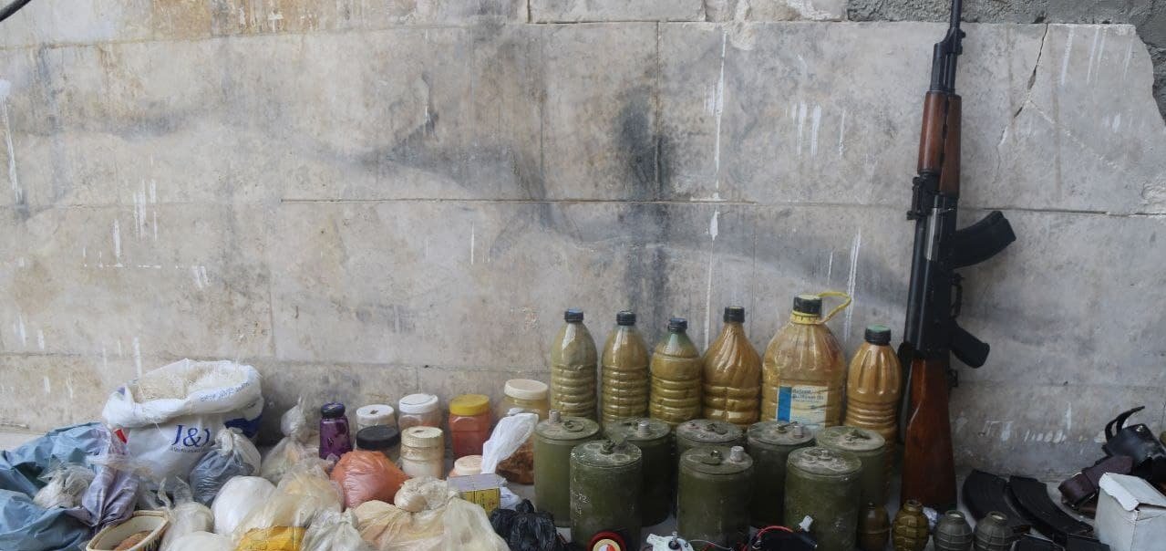 The General Security Service shared photos showing explosive materials, a number of mines and military equipment which were allegedly hidden by al-Jasim.