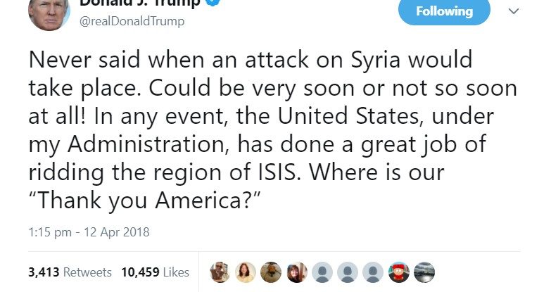 Twitter-style diplomacy news. Now, US President Donald Trump says that he has never promised that an attack on Syria would…