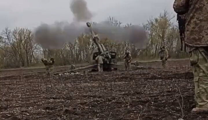 Update: the howitzer seen in the footage has been identified as a Soviet-made 2A65 Msta-B 152 mm towed howitzer. This…