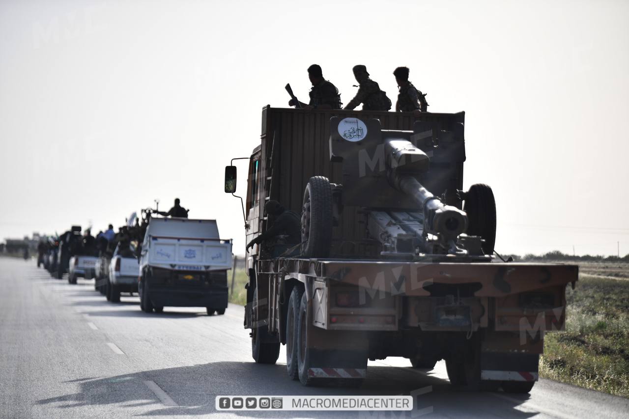 The photos show hundreds of Turkish-backed militants armed with heavy weapon like truck-mounted heavy machine guns, battle tanks and mortars and howitzers conducting live-fire drills in northern and northeastern Syria.