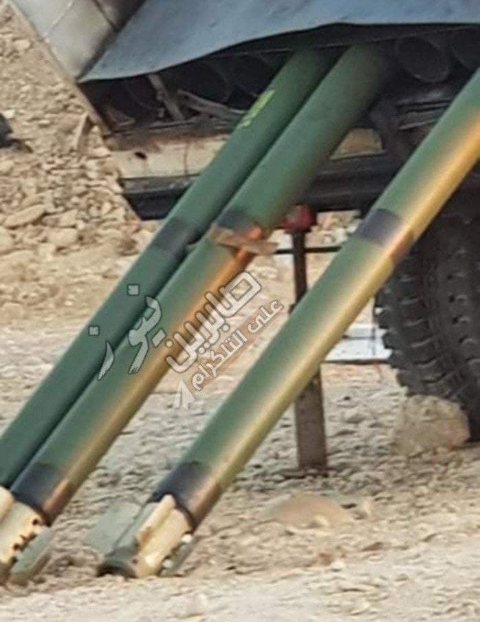 The launcher was apparently loaded with Arash-4 122 mm rockets made by Iran’s Defense Industries Organization. This type has a range of 40 kilometers and is armed with a HE-FRAG [High Explosive – Fragmentation] warhead.