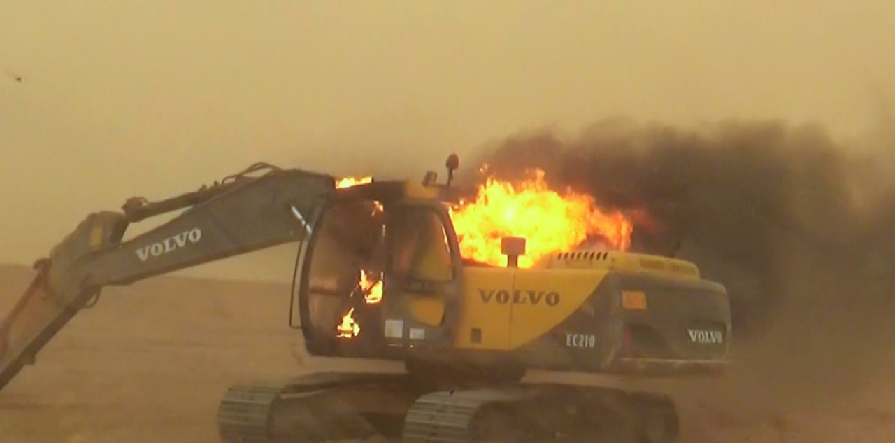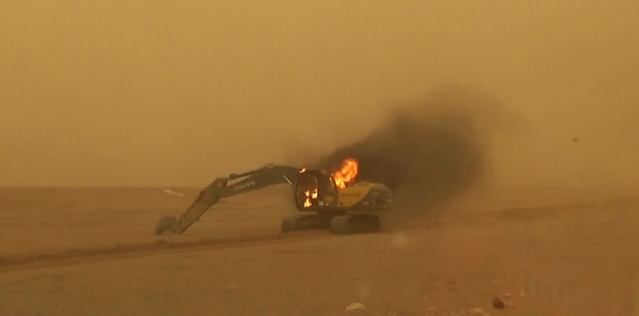 During the attack, ISIS terrorists destroyed three excavators and damaged a truck, that was carrying supplies for the Iraqi military.