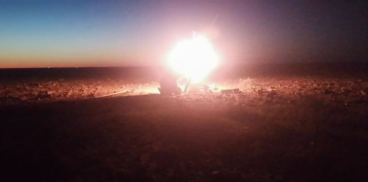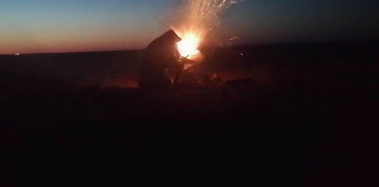 The remaining photos show a mortar attack on a military position near the town of Rutba in the western province of al-Anbar on April 14.