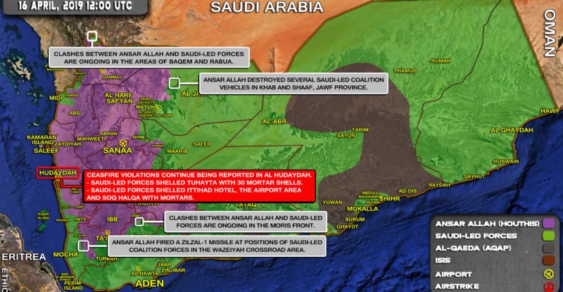 Ceasefire violations were reported in Al Hudaydah; Clashes between Ansar Allah and Saudi-led forces were reported in Qays Mountain and…