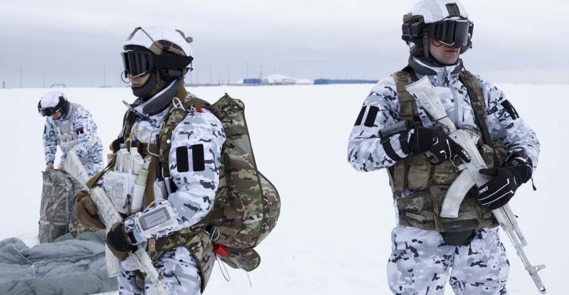Personnel of the Russian Airborne Forces performed a group parachute jump in the Arctic from an altitude of 10,000 metres,…