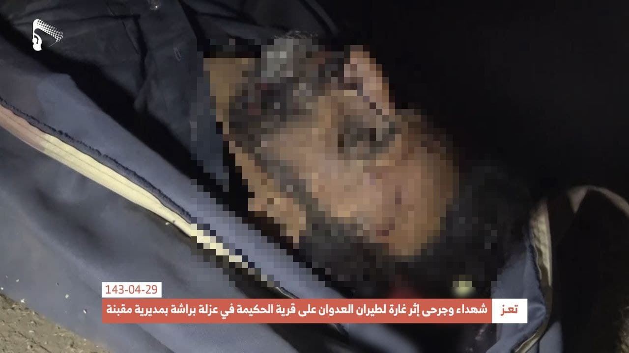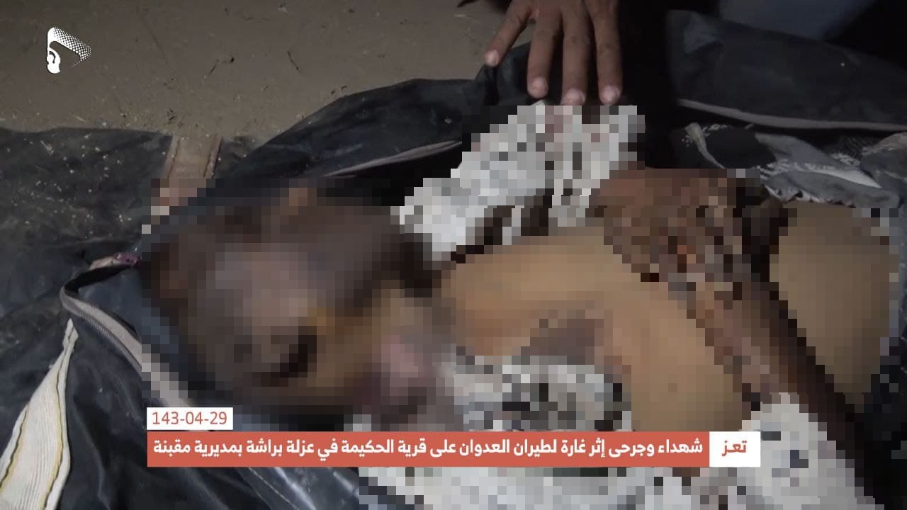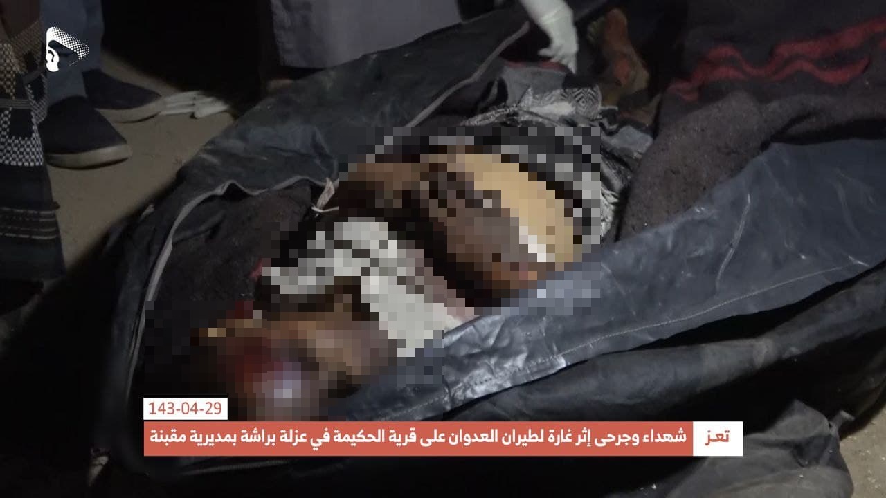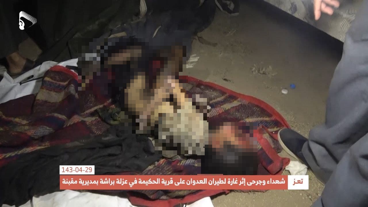 The Houthis (Ansar Allah) Media Center shared photos showing the dead bodies of some of the victims, including two children.
