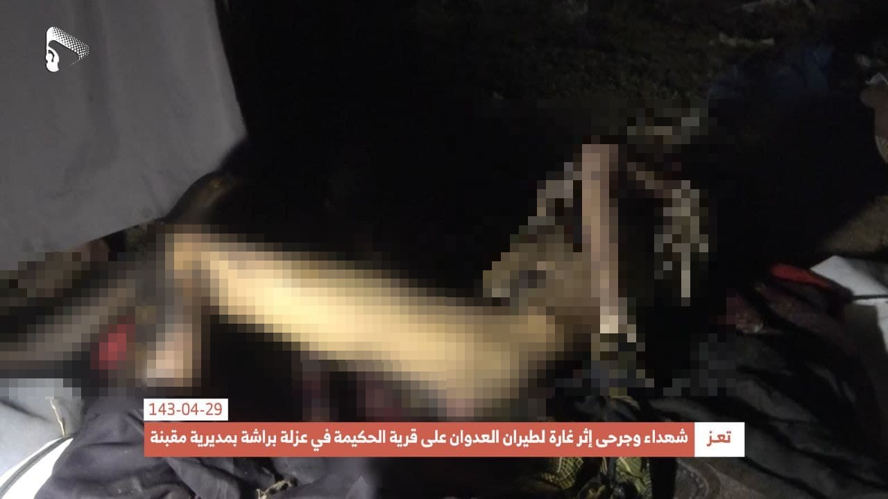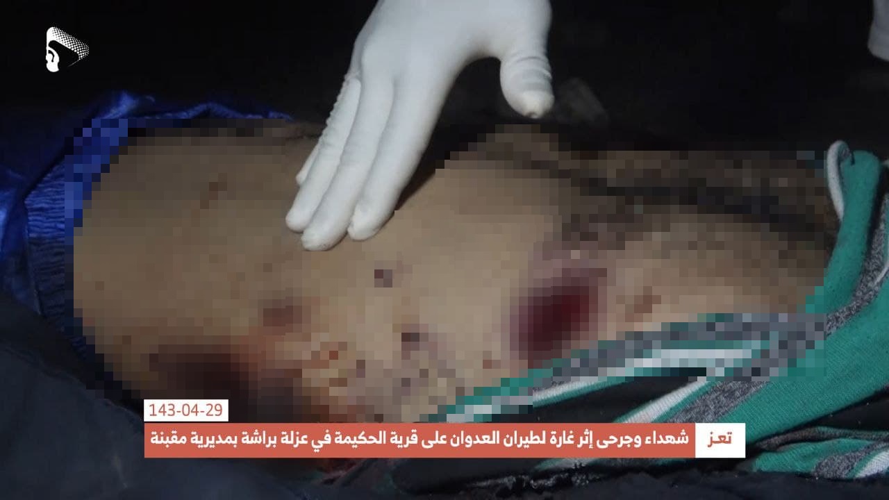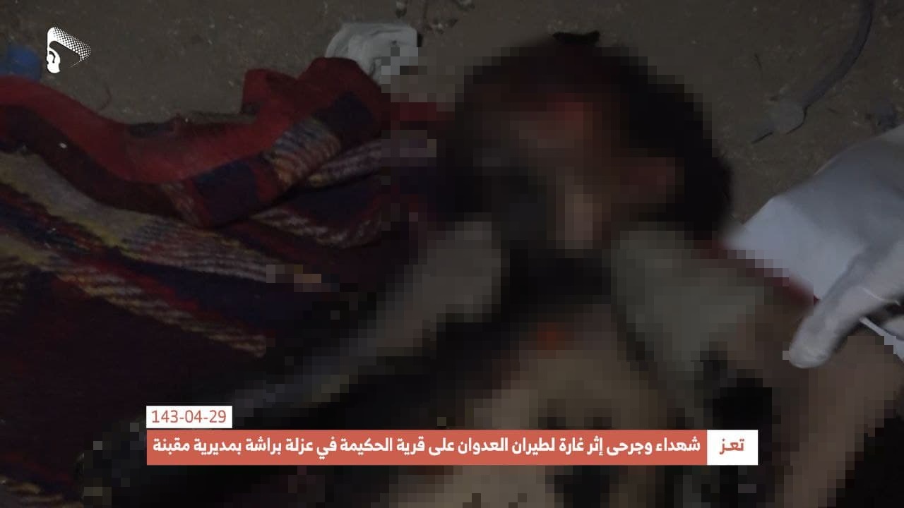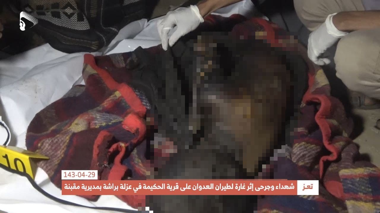 The Houthis (Ansar Allah) Media Center shared photos showing the dead bodies of some of the victims, including two children.