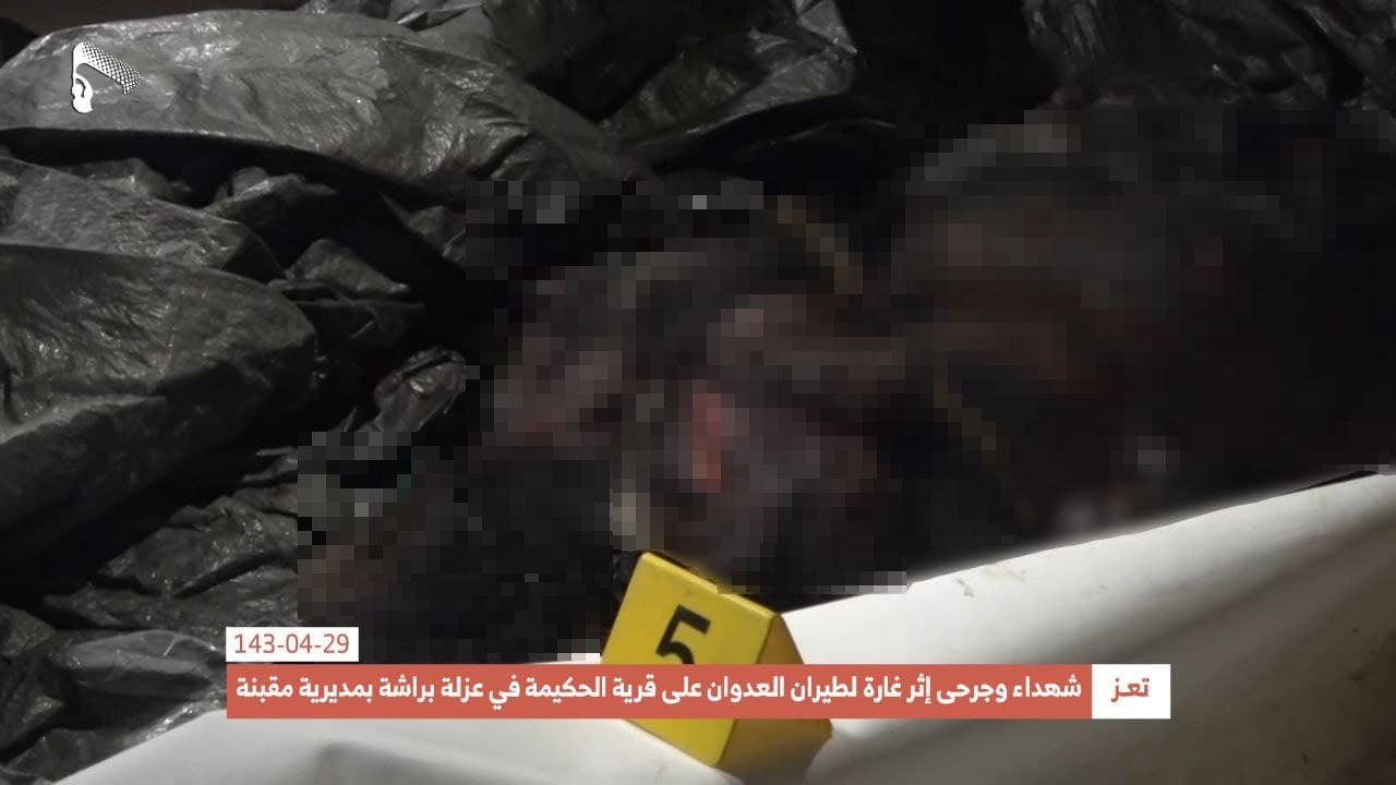 The channel’s reporter in Tazi said that coalition warplanes flew over al-Hakimah for a while after the deadly airstrike, preventing first responders from recovering all the bodies from the scene of the attack.