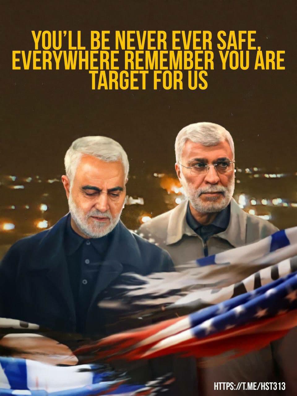 The Sabereen News shared two posters celebrating the attack on Ain Assad. One of them included the photos of Abu Mahdi al-Muhandis, Deputy-Commander of Iraq’s Popular Mobilization Units, and Qassim Soleimani, Commander of Iran’s Quds Force, who were killed last year by the US. Another showed several drones, similar to the Iranian Ababil-2, attacking the air base.