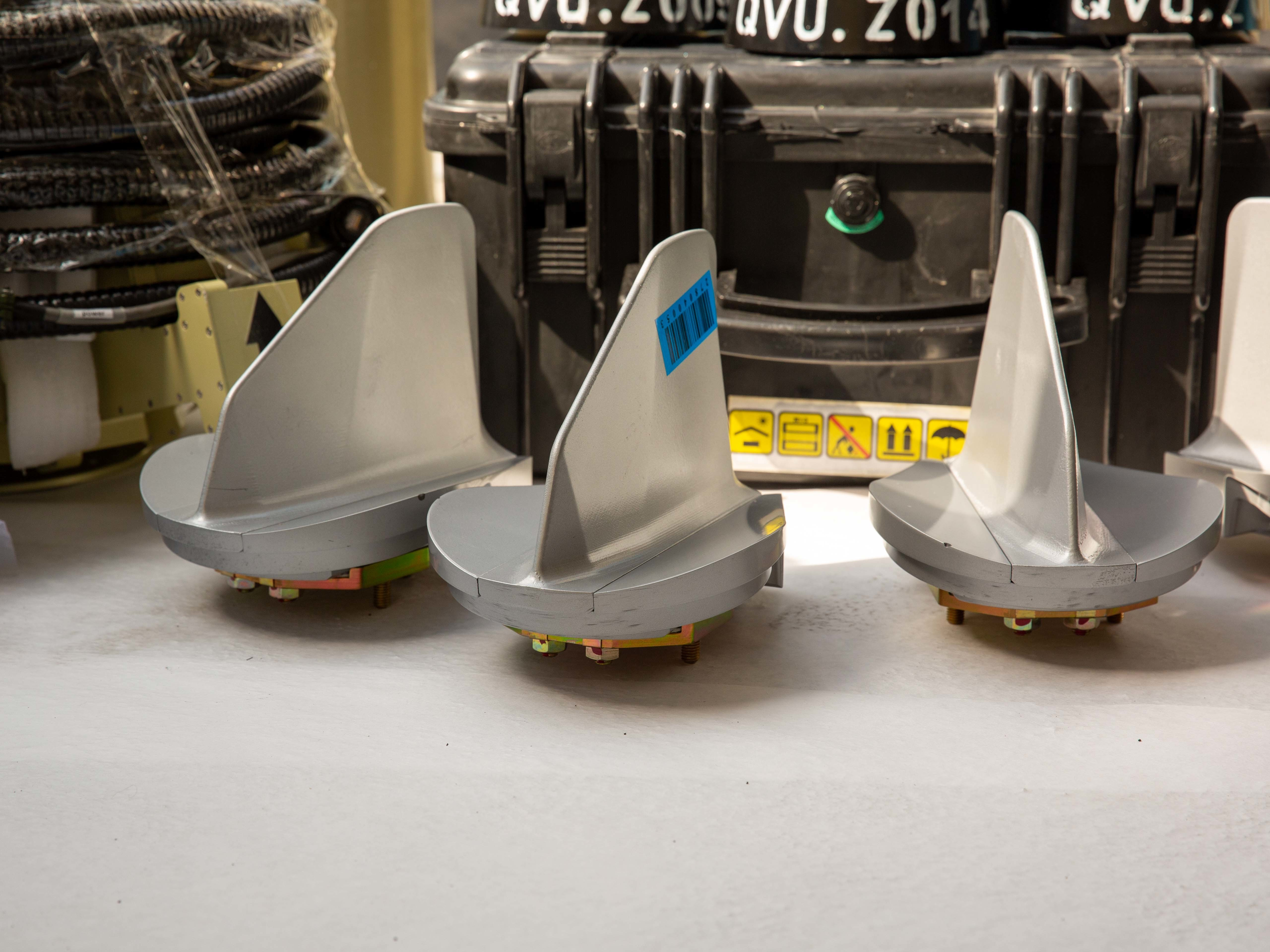 - Jet vanes seized by the United Kingdom Royal Navy sit pierside during inventory at a military facility in the U.S. 5th Fleet area of operations, Feb. 26, 2023. (Photo by Sgt. Brandon Murphy)