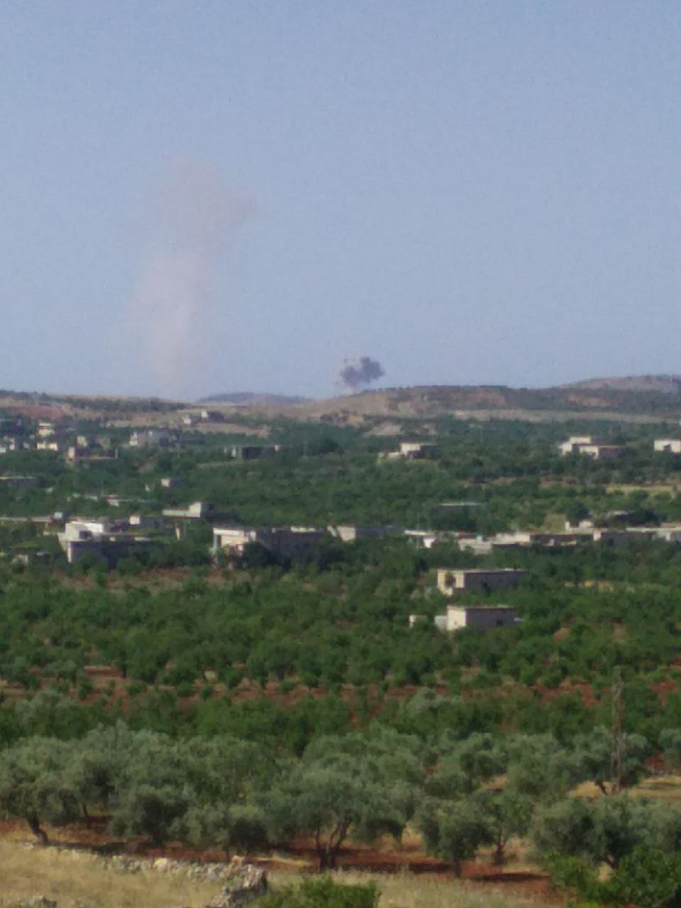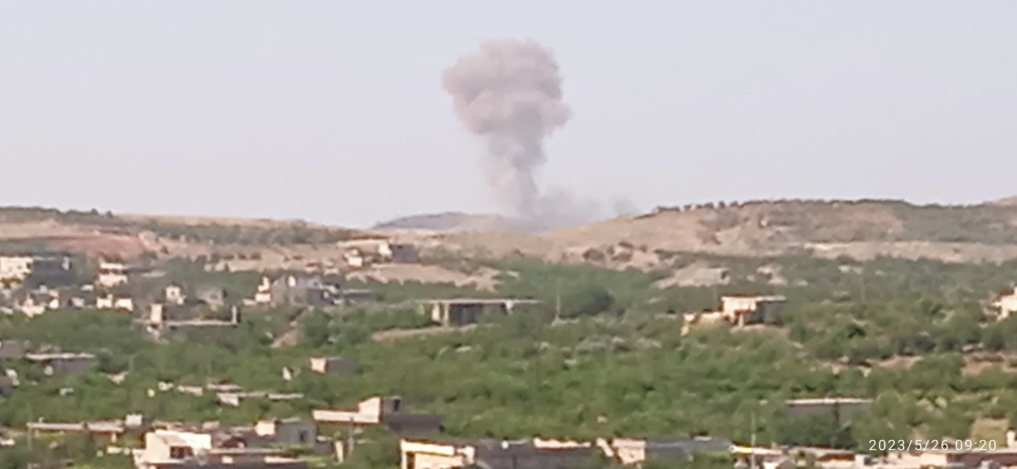 At least four airstrikes hit the outskirts of the towns of Fleifel and Sufuhon in Zawiya Mountain in the southern Idlib countryside. Photos that surfaced online after the airstrikes showed a large cloud of dust and smoke rising from the mountainous area. No casualties were reported.