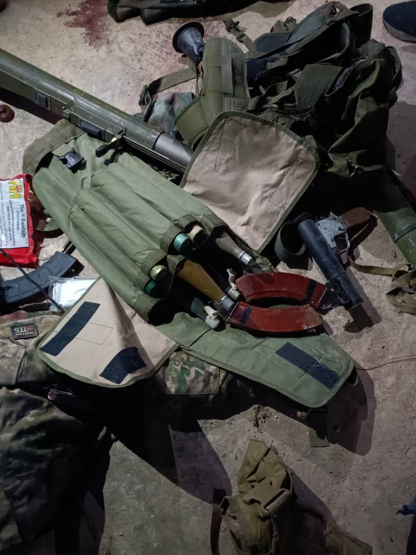 The MoD released photos showing the dead bodies of five militants which were retrieved by the SAA as well as some captured weapons and military equipment.