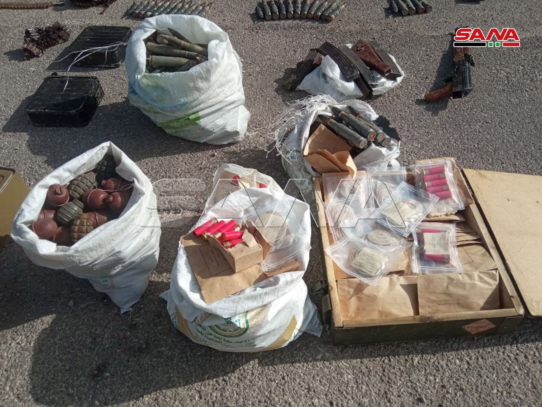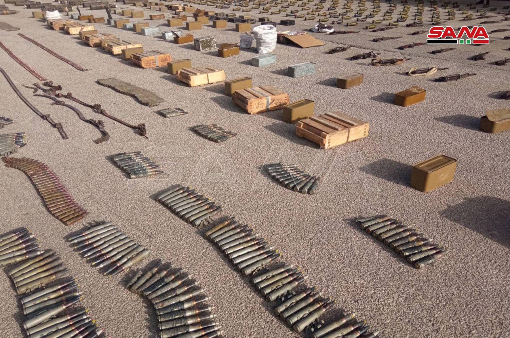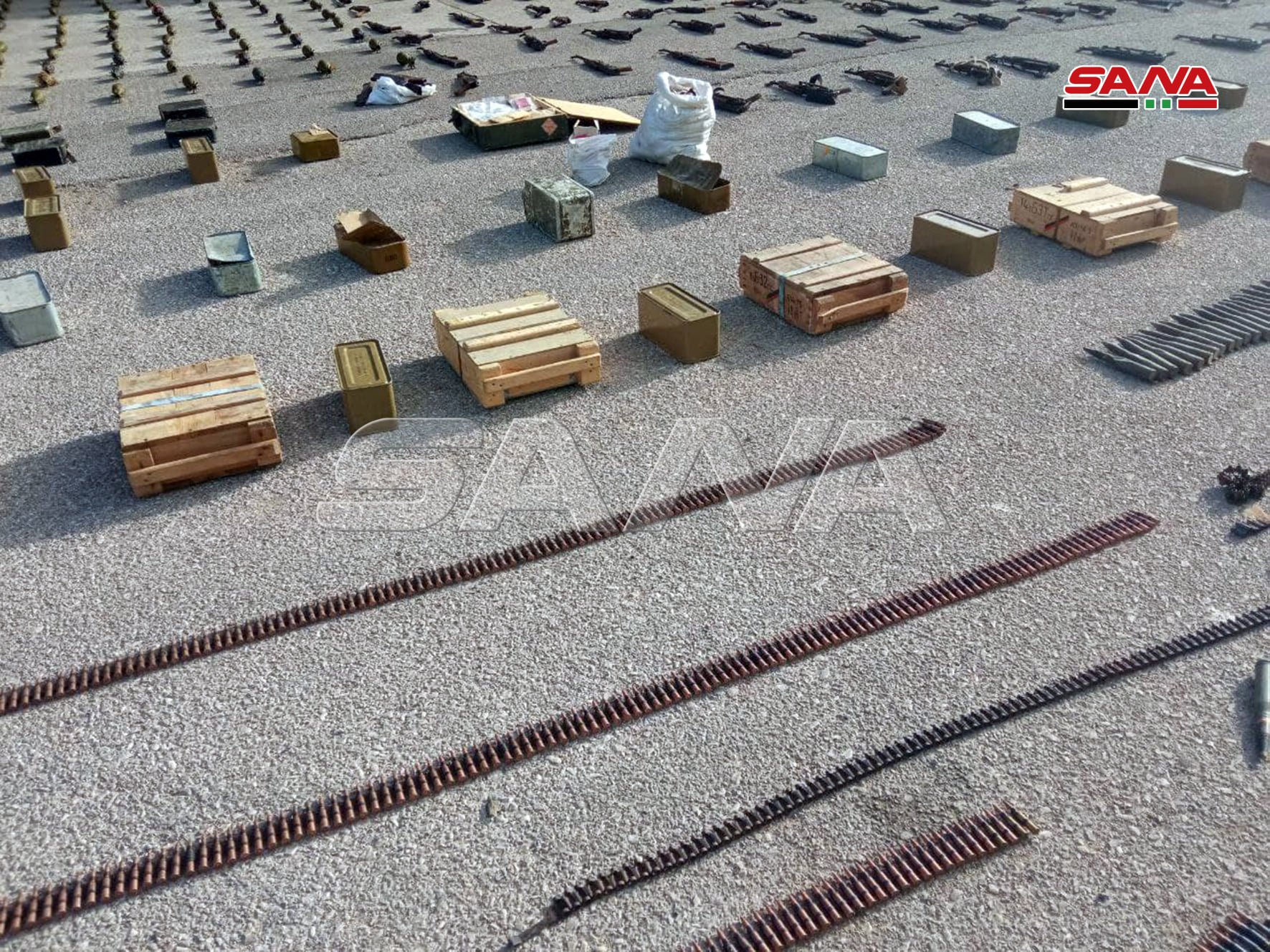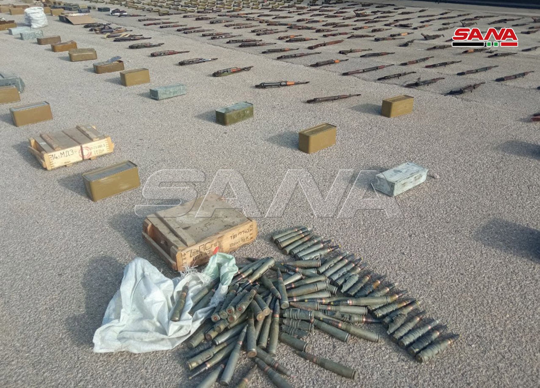 The weapons and ammunition were uncovered by the Syrian military and security forces in the course of combing and search operations in the region.