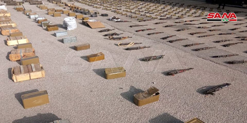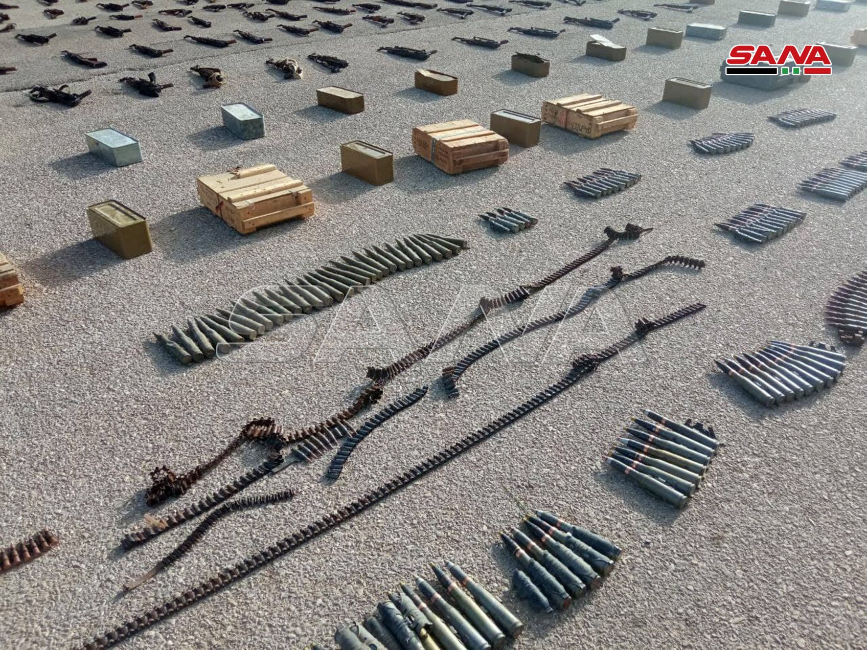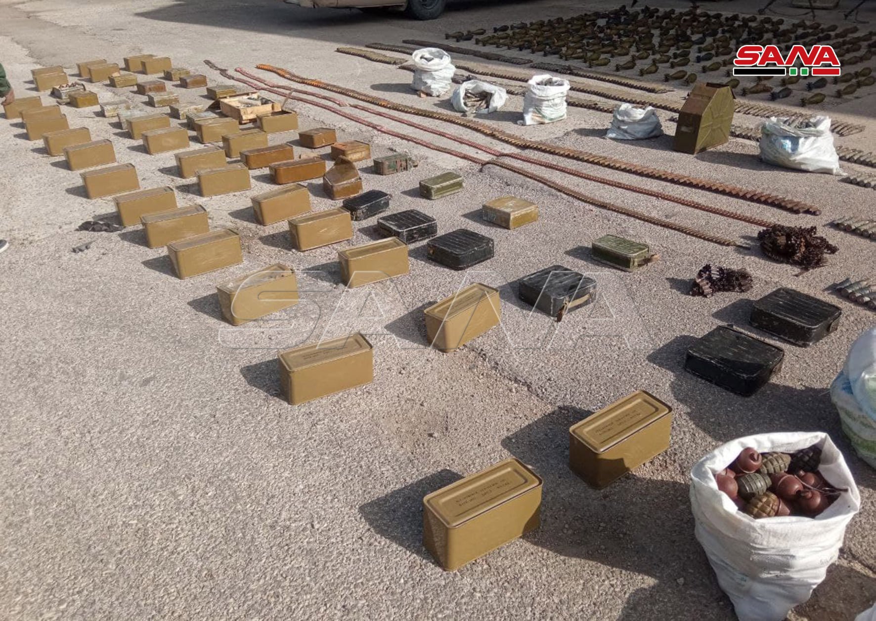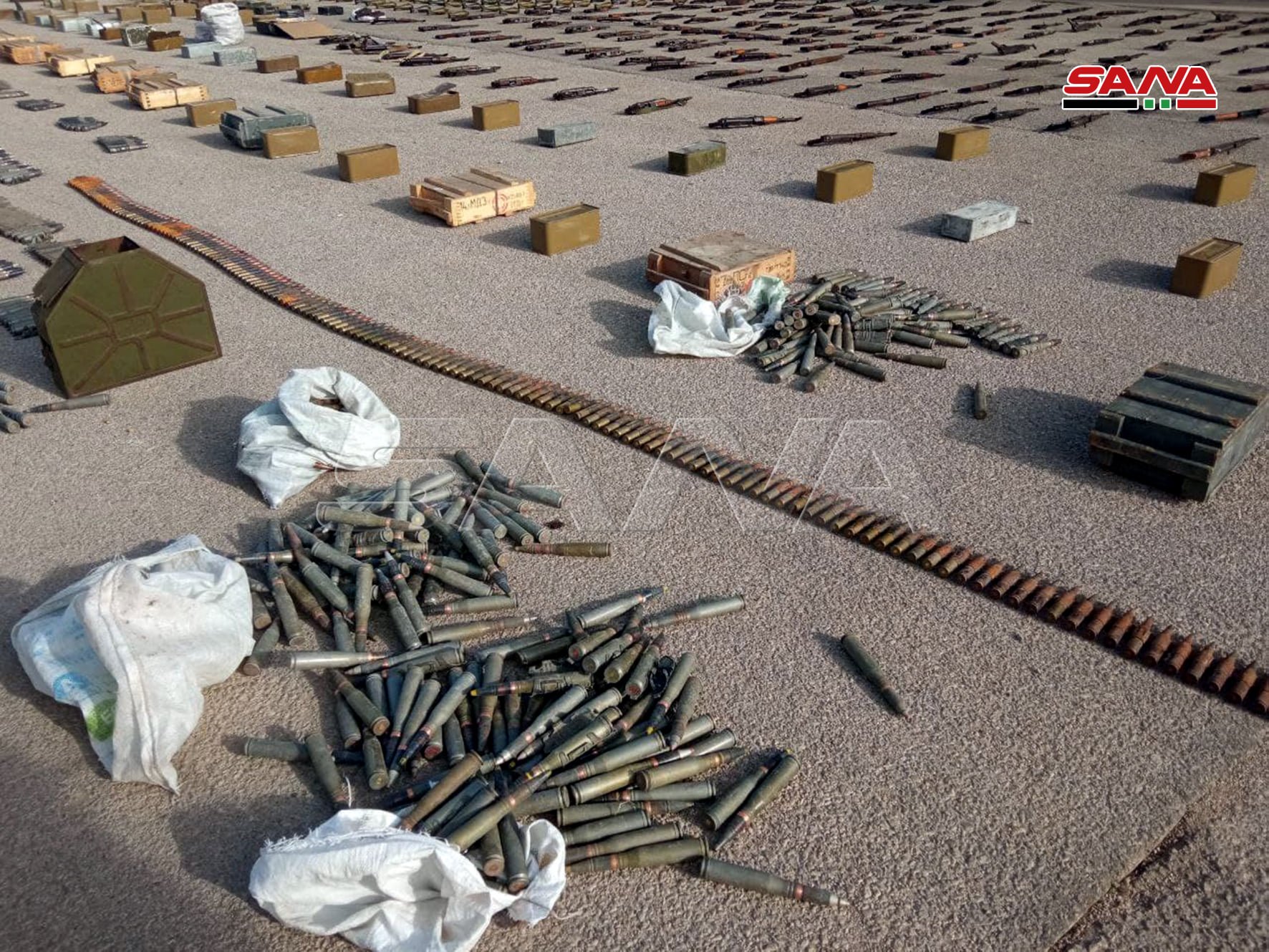 The weapons and ammunition were uncovered by the Syrian military and security forces in the course of combing and search operations in the region.