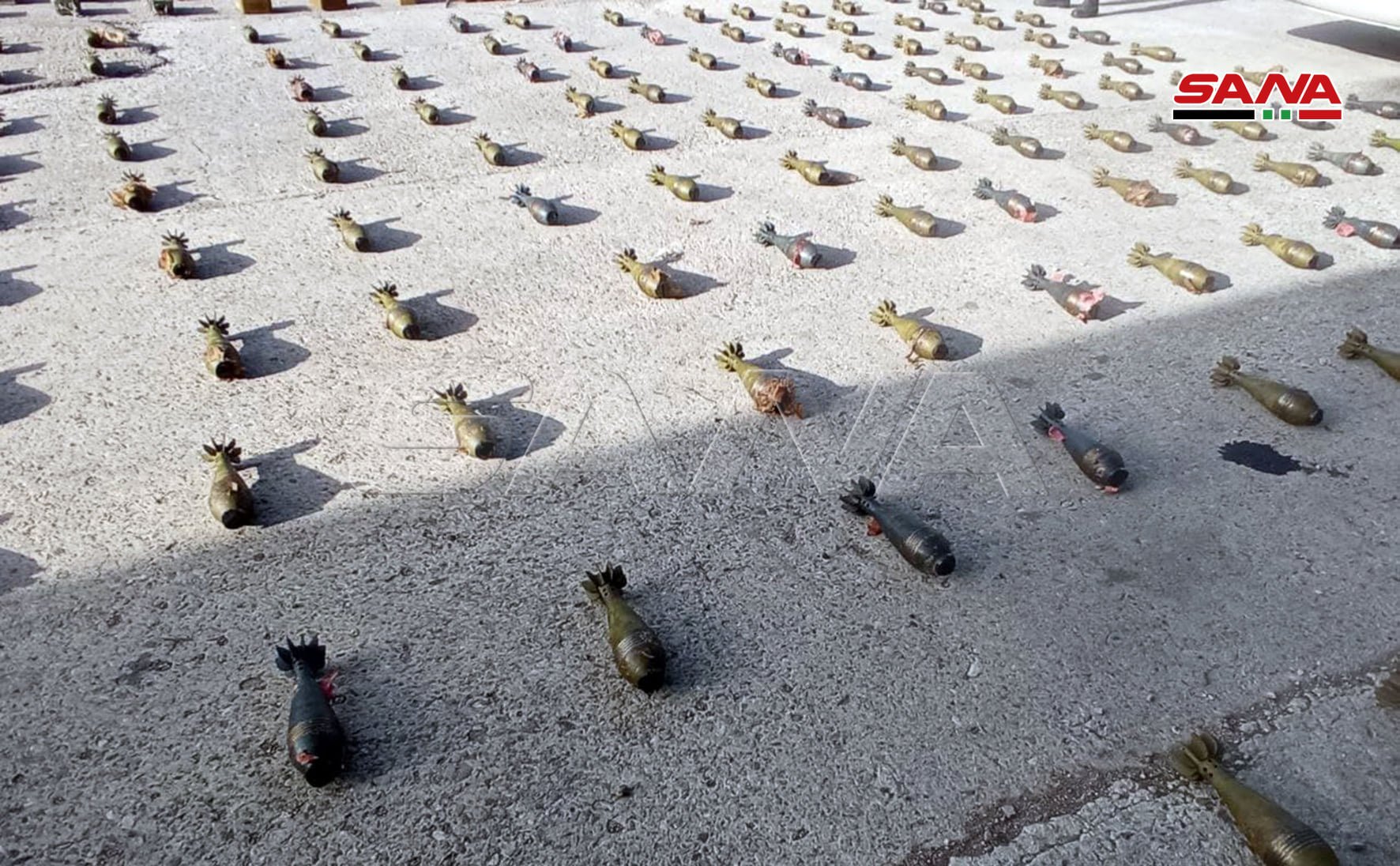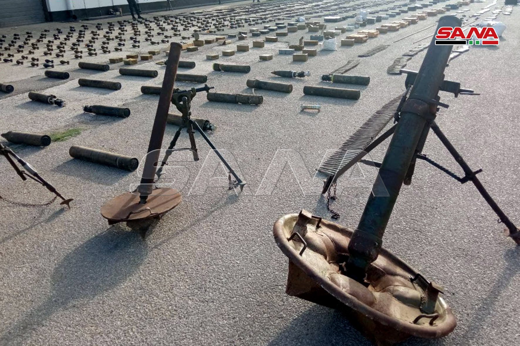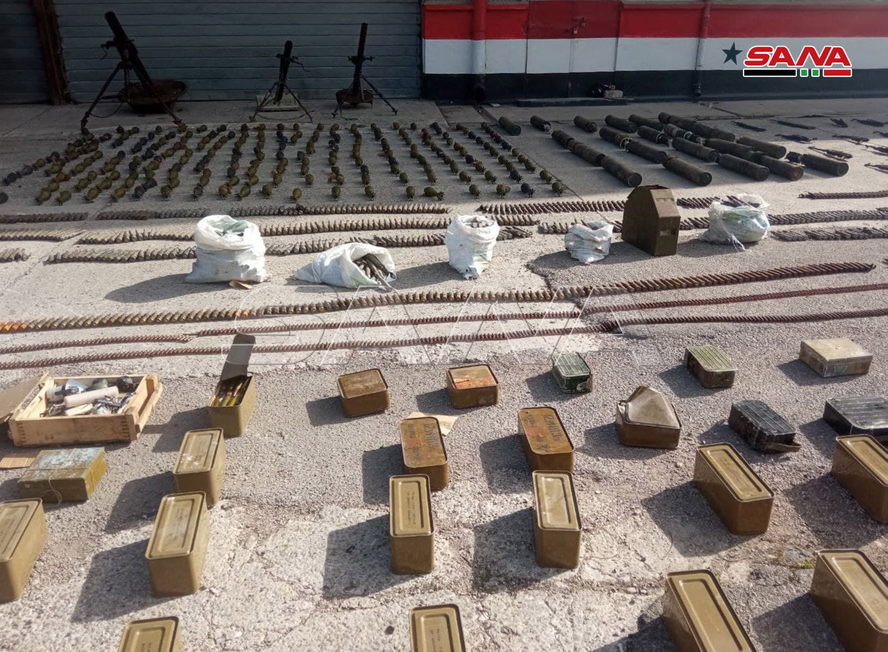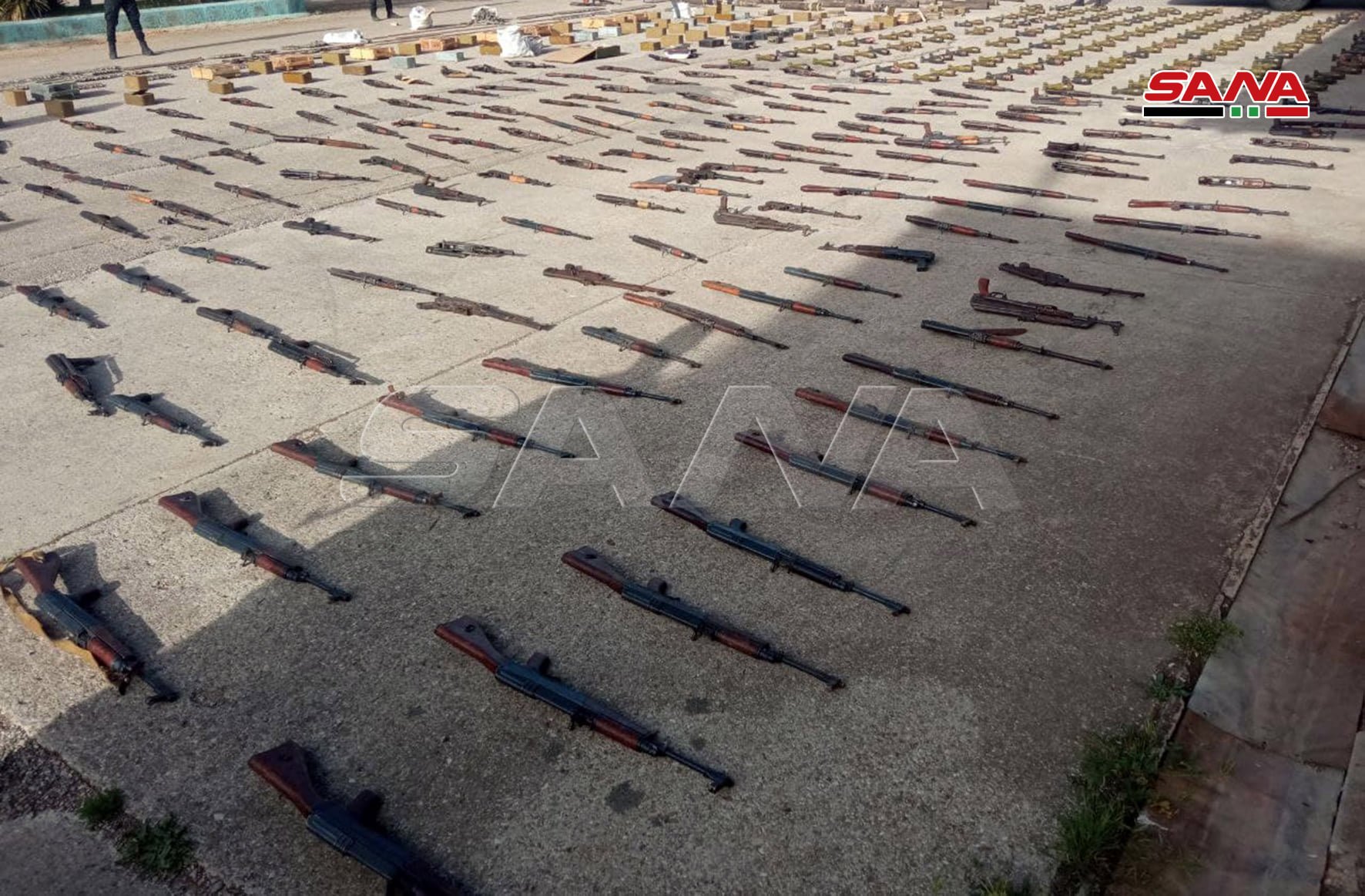 The weapons and ammunition were uncovered by the Syrian military and security forces in the course of combing and search operations in the region.