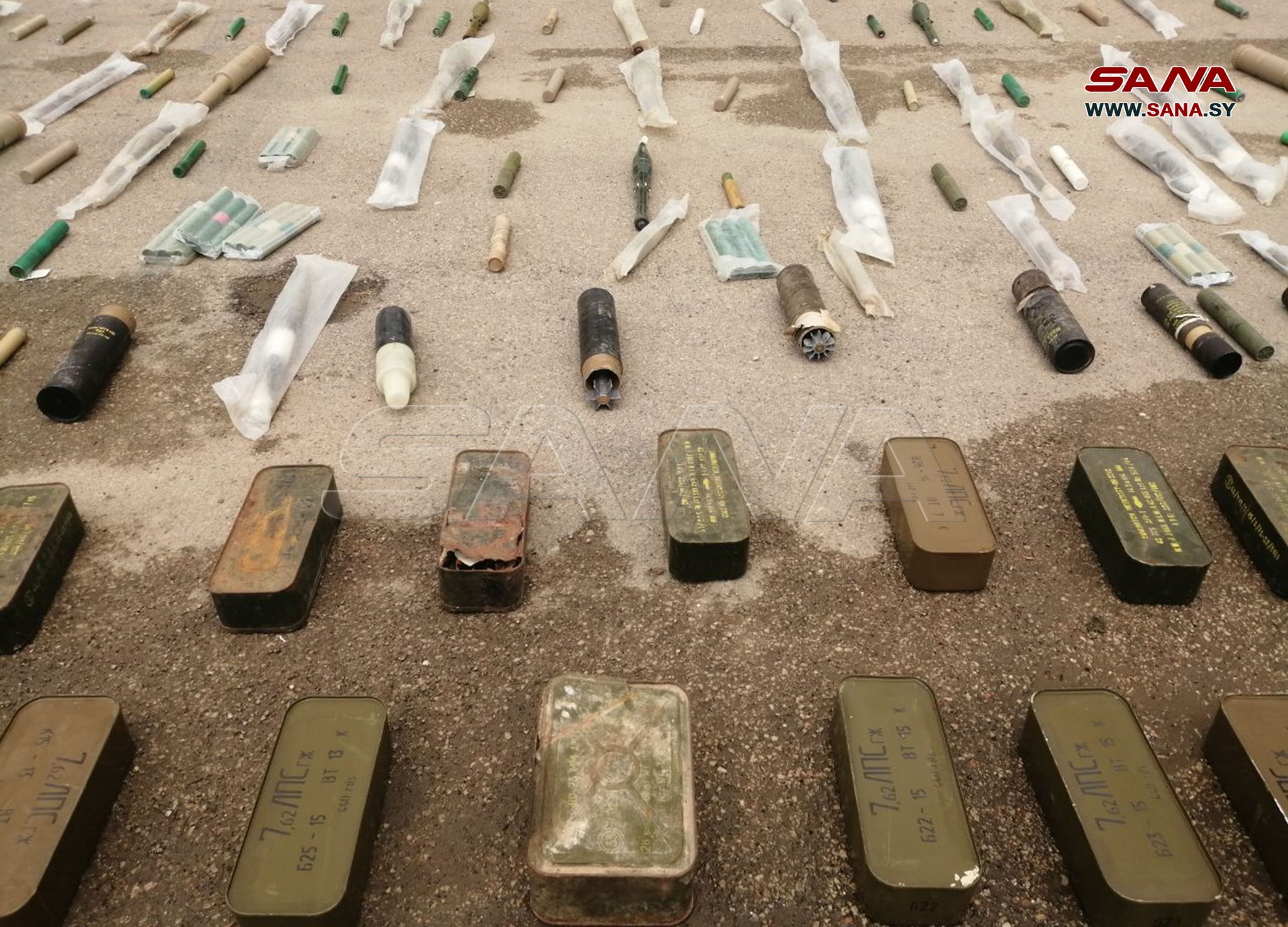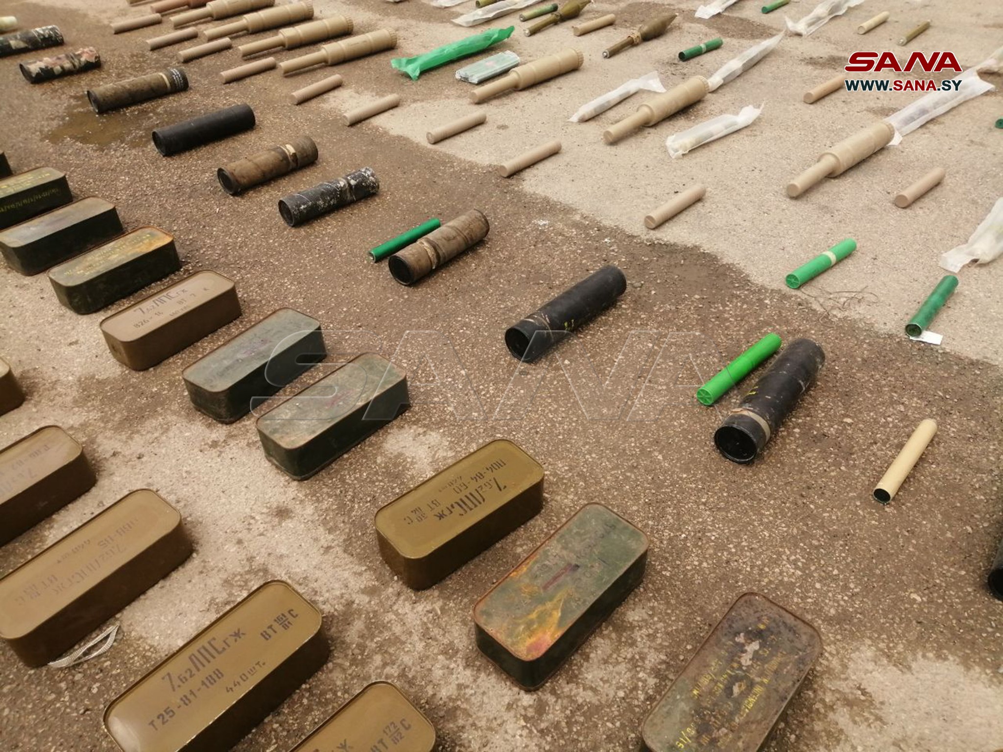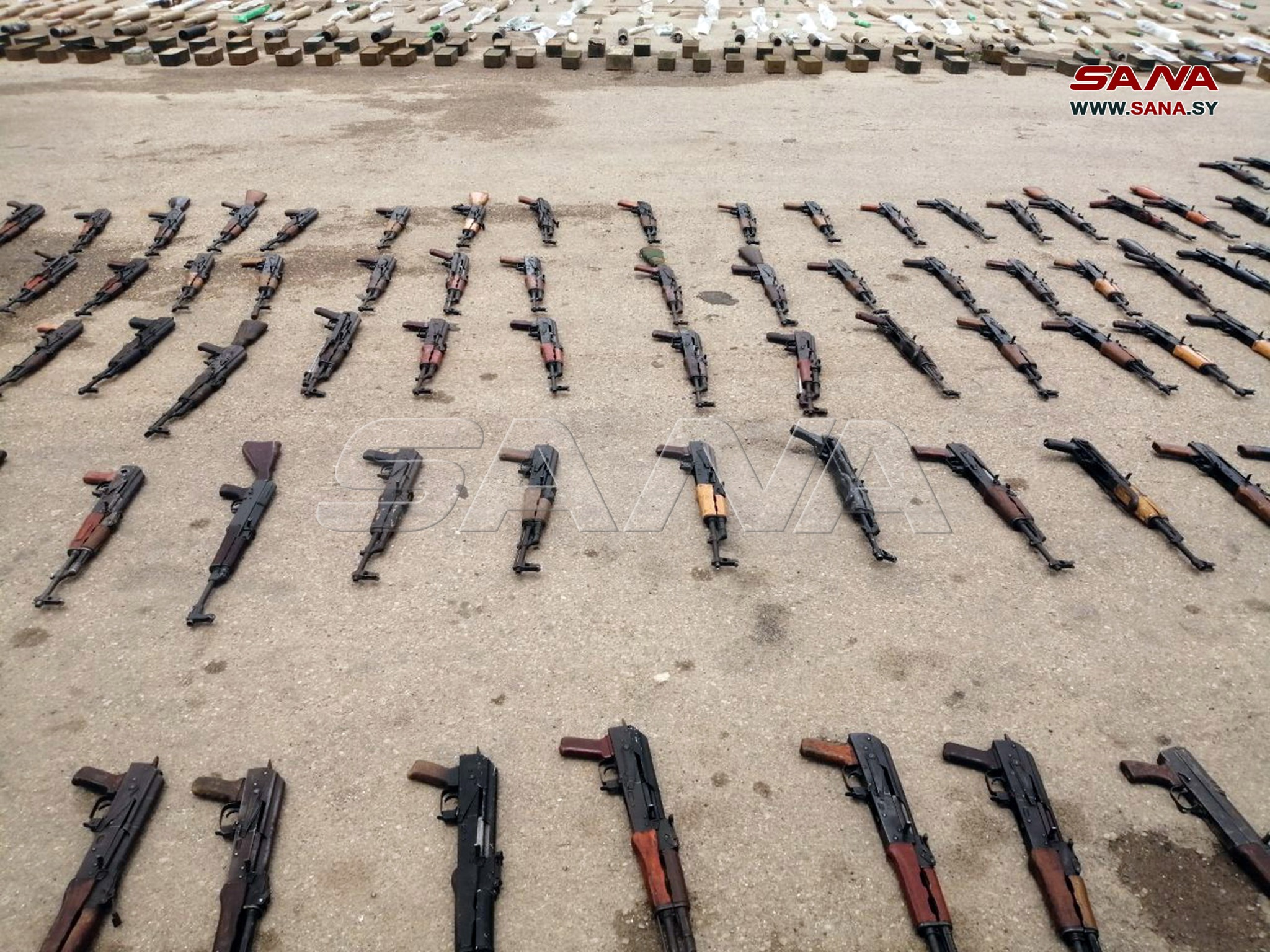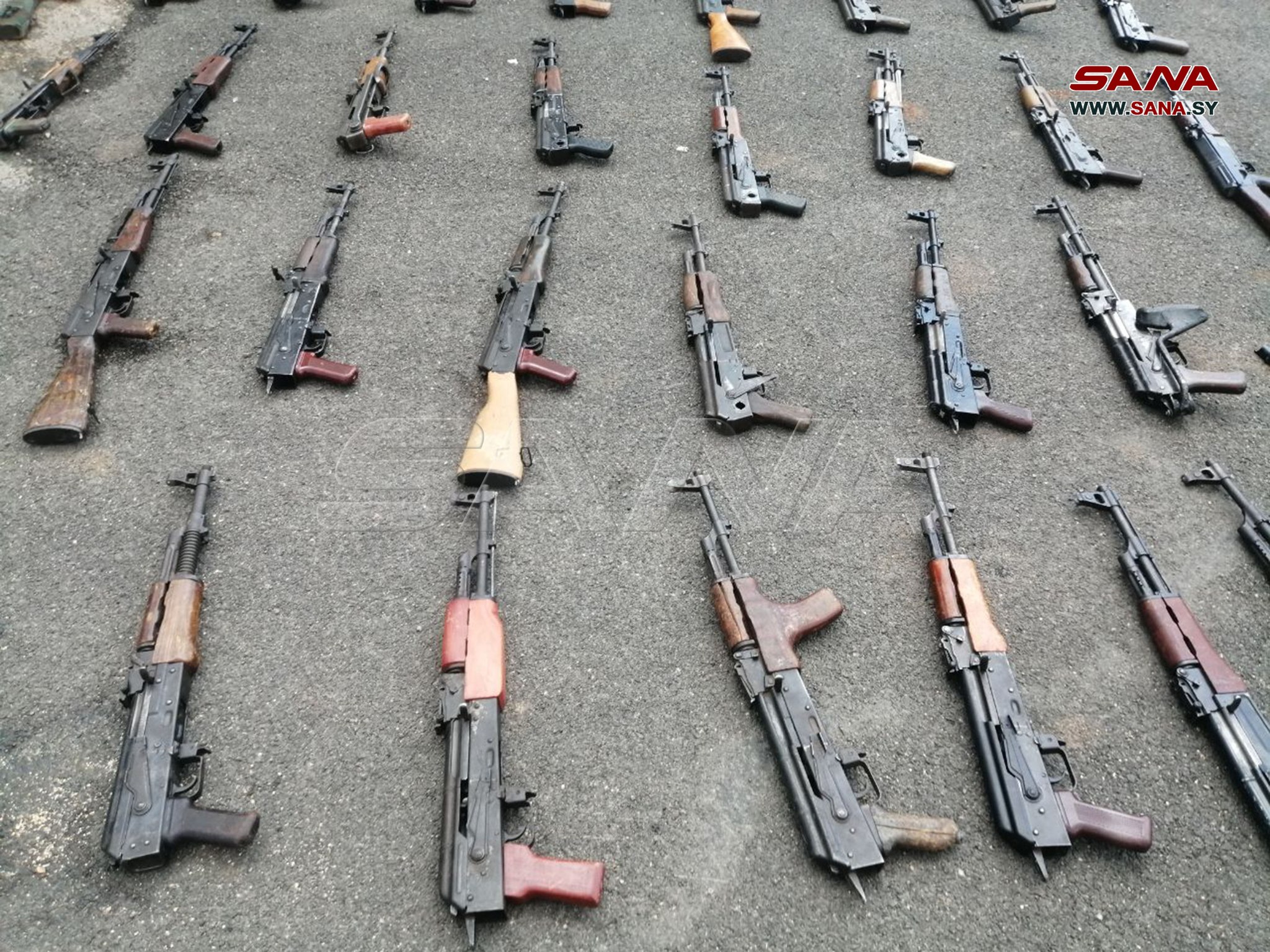 Photos shared by the SANA showed dozens of assault rifles, rocket-propelled grenades, hand grenades and heavy mortars, which were seized by Syrian security forces from different hideouts in Daraa.