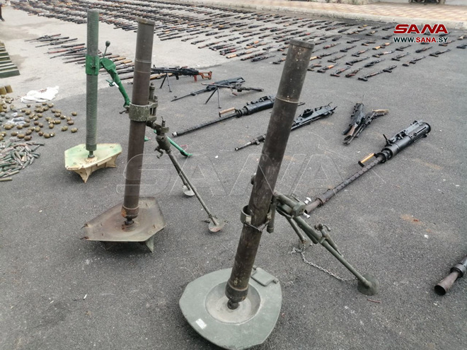 Citing a security source, the state-run news agency said that the weapons and ammunition were uncovered during recent combing operations thanks to information provided by the locals in Daraa city and its countryside.