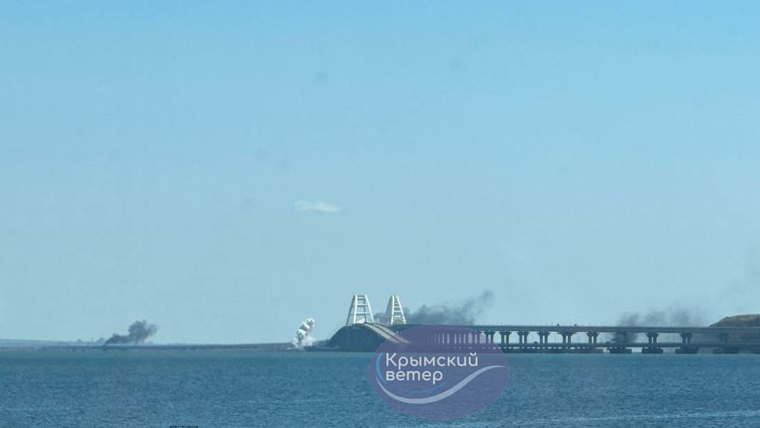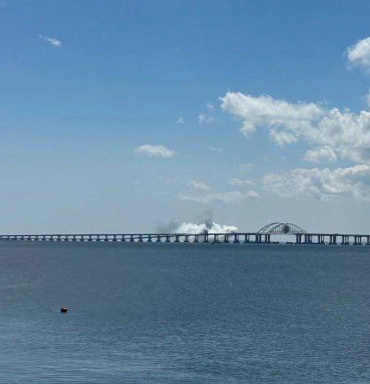 plumes of smoke were seen and recorded on the kerch bridge, ruzzian propaganda is hilarious 🔥🔥🔥 😆😆😆