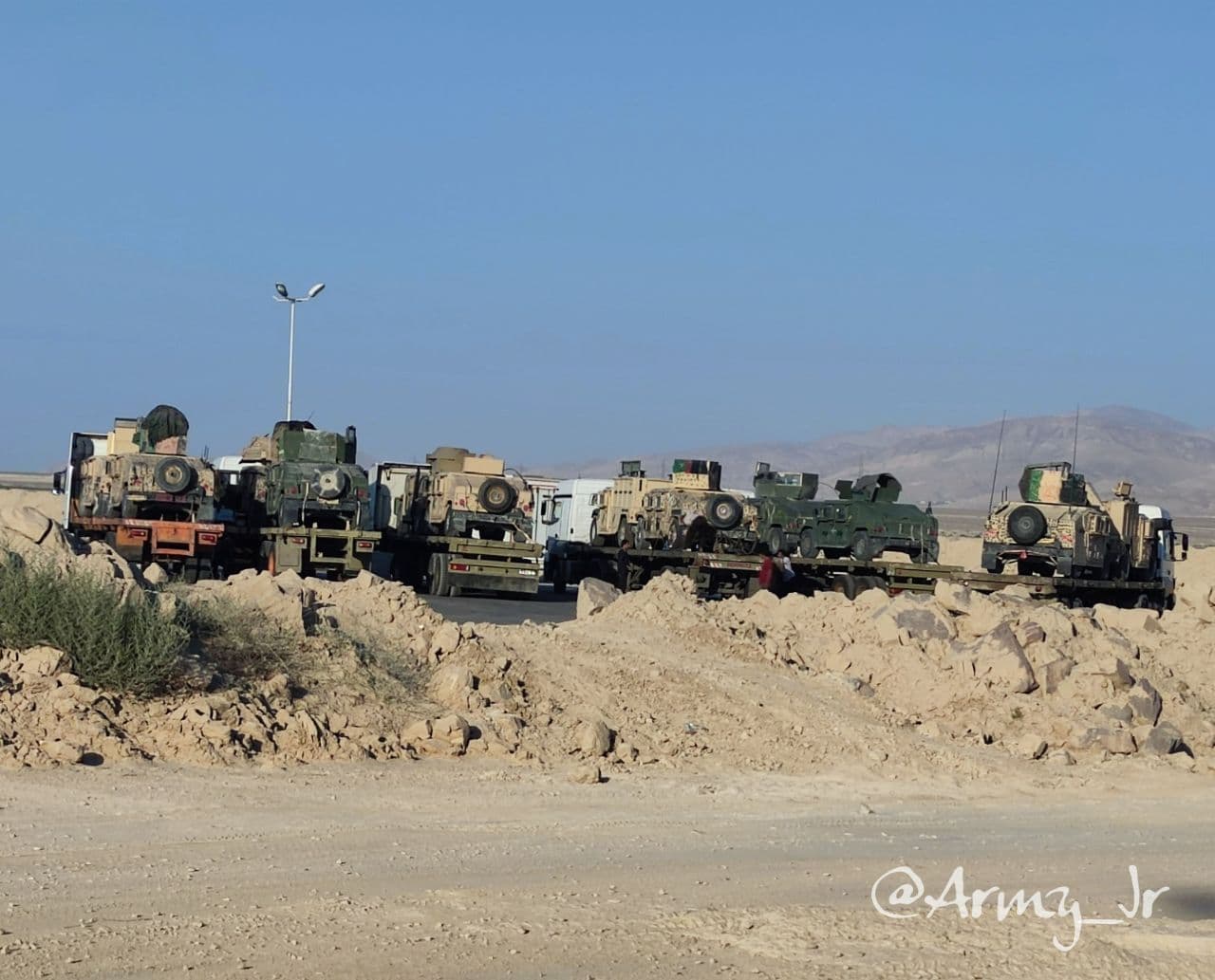 The armored vehicles, which bear the markings of the now-defunct Afghan government forces, were loaded on the back of trucks with Iranian military license plates. The convoy reportedly took off from the northeastern Iranian city of Mashhad.